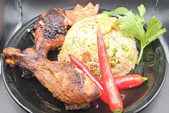 Indo Fried Rice with BBQ Chicken and Vegetables